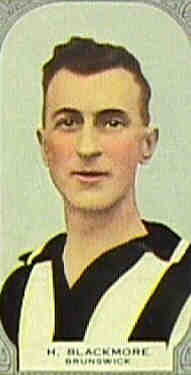 Born in Maldon, near Castlemaine in 1901, Blackmore came to Princes Park as a 22 year-old, and was rushed straight into Carlton's line-up at full-back for the first game of the 1923 season against Fitzroy at Brunswick St. The Blues dominated the match throughout the first half, but fell into a deep hole after half-time to be beaten by 23 points. Blackmore struggled to adapt to the pace and intensity of VFL football on debut, as he did the following week, when Carlton hosted St Kilda at Princes Park and were demolished by 44 points. He was omitted from the senior team at that point, and encouraged to find his feet with the seconds.